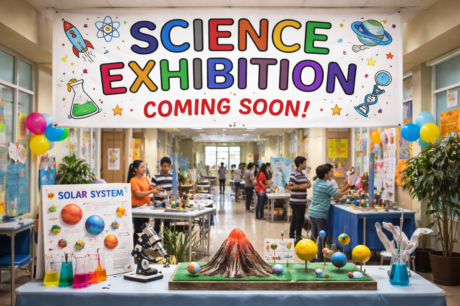 Students present innovative science models and projects. Encourages research thinking and practical learning.